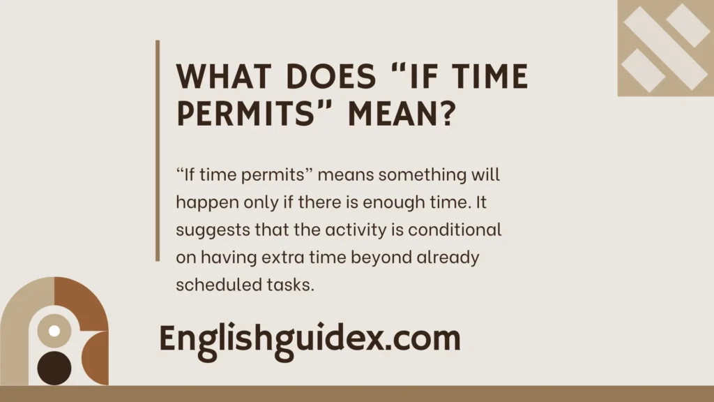 Using different expressions for “if time permits” helps you communicate politely, naturally, and confidently. While the original phrase works well in most situations, alternatives allow you to adjust tone, formality, and context.