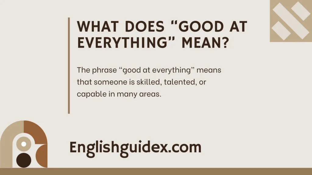 The phrase “good at everything” means that someone is skilled, talented, or capable in many areas.